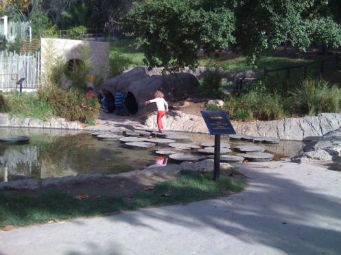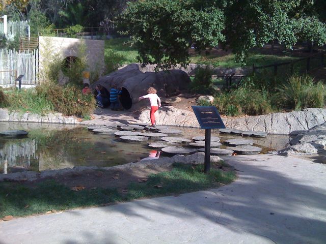 Anna had the day off Monday, so we had a father-daughter day at the Oakland Zoo. I don’t know about you, but I never seem to actually see many animals when I visit zoos or aquariums with my daughter. Instead, we visit the attractions that entail climbing, jumping, and (at the aquarium) drawing. At least she didn’t fall in to the frog pond (which is more than I can say for some of the kids there).