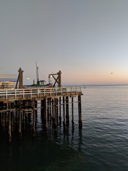 The first day we walked around downtown for a bit, exploring some of the shops and restaurants. Bookshop Santa Cruz was fun to poke around, but then bookstores always are. The Patagonia outlet was sadly packed; they were having.a sale, so it was so packed that it was impossible to actually look around. The Verve Coffee Roasters location on Pacific was a nice, light space, but it wasn’t really designed to actually sit down and enjoy your coffee (but then, there were enough people ordering that the space was clearly designed with throughput in mind.