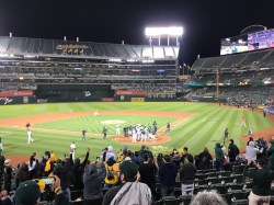 - A’s tickets are way cheaper than Giant’s tickets. That’s partly due to the relative track records of the teams and the relative quality of the stadiums (although the brutalism of the Coliseum does have a certain retro charm now), but I suspect it’s also due to the fact that San Francisco has a lot more money than Oakland. Cheap tickets made it easier to catch more games, and since we started going to games when our daughter was still young it didn’t make a lot of sense to pay more for tickets when she didn’t really care who was playing.